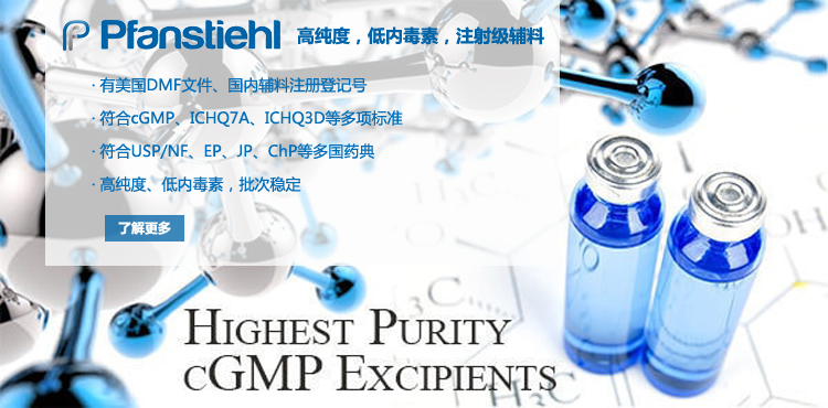 “熱烈祝賀Pfanstiehl的注射級甘氨酸Glycine(G-140)喜獲CDE登記號F20250000403, 這是Pfanstiehl產品獲得的第18個CDE登記號!”甘氨酸在醫藥輔料制劑中應用廣泛,, 可作為緩沖劑,增溶劑,穩定劑等,具有諸多優勢。Pfanstiehl秉承一貫高品質理念,為滿足全球生物制藥行業對于高品質甘氨酸的需求,隆重推出的注射級甘氨酸Glycine (G-140), 具有超高純度,超低內毒素,超低金屬殘留的特點,單獨檢測29種金屬離子,并且新增DNA,RNA,DNA酶,RNA酶和脂肪酶,亞硝酸鹽等多項質量指標的檢測,符合多國藥典規定(USP, EP, BP, JPE, ChP),可用于生物治療性藥物和疫苗的生產。產品信息:· 產品名稱:Glycine, High Purity, Low Endotoxin, Low Metals, USP, EP, BP, JPE, ChP (G-140)· 中文名稱:甘氨酸· 分子式:C2H5NO2· 分子量:75.07 g / mol· CAS號:56-40-6· 產品貨號:G-140產品特點: · 超高純度,超低內毒素,超低微生物含量,超低金屬雜質殘留· 質量指標新增DNA,RNA,DNA酶,RNA酶,脂肪酶和亞硝酸鹽檢測· 符合多國藥典:USP, EP, BP, JPE, ChP· 符合ICH Q3D標準· 符合GMP標準· 已獲DMF和CDE登記號 產品應用:· 緩沖劑· 穩定劑· 增溶劑如果您對Pfanstiehl注射級別Glycine G-140感興趣,歡迎聯系Pfanstiehl 中國區代理商北京西美杰科技有限公司獲得如下詳細的產品概況說明文件和測試樣品。Pfanstiehl Inc.最新產品系列如下,歡迎聯系北京西美杰科技有限公司獲取100g裝免費樣品。北京西美杰科技有限公司為Pfanstiehl中國代理,為客戶提供完善的技術支持與售后服務。歡迎撥打西美杰客服電話400-050-4006或者登陸網站www_xmjsci_com.12306kongbao.com了解更多信息。 更多>